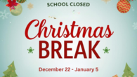 Christmas Break starts with an early dismissal on December 19th. School resumes on Tuesday, January 6th. Merry Christmas Shamrocks!!
