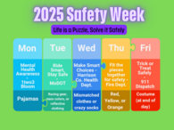 Elementary Safety Week starts Monday, October 27th. Each day will have extra activities and dress up days.